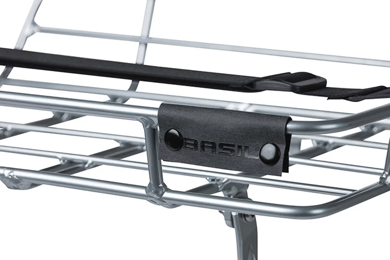 Le Basil Portland Front Carrier High est un élégant porte-roue avant en aluminium de style vintage, adapté au sac Portland. En plus du sac Portland, d’autres sacs de dimensions similaires peuvent également être placés sur ce support frontal. Une sangle amovible est fixée au support avant pour vous aider à maintenir votre sac ou votre panier en place.