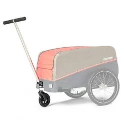 Les parois et la toiture sont amovible, la remorque peut servir comme plateau et ne peux pas être accrocher à un vélo puisqu’elle est prévu pour être tirer à la main.