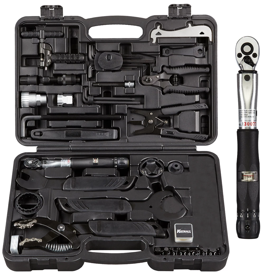 La Katana TC-3 est une mallette à outils pour vélo modulaire qui couvre les besoins de base classiques tout en répondant aux exigences des types de vélos modernes. Elle contient tous les composants essentiels et offre ainsi la possibilité d’équiper ton atelier de vélo d’un seul coup avec tout ce que le viseur peut désirer.