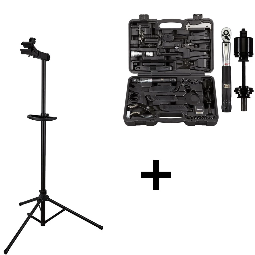 Le kit d’atelier WS-11 de Katana combine le support de montage pour vélo électrique RS-1e éprouvé avec la mallette à outils professionnelle TC-1 richement équipée.