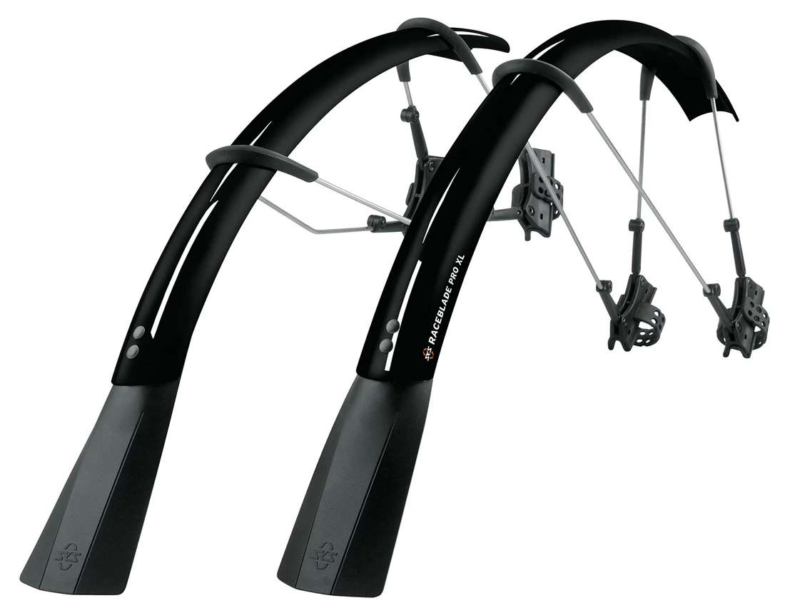 Le système de fixation simple à deux articulations Quick-Release s’adapte également aux fourches aéro et aux freins à disque. Les garde-boue peuvent être parfaitement adaptés au rayon des pneus en réglant la longueur des entretoises. Le spoiler super léger et extra-long offre une protection supplémentaire contre les projections.