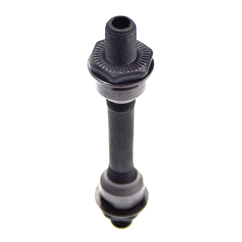 Cette pièce détachée en acier permet le remplacement d’un axe creux d’une longueur de 108 mm sur une roue de vélo.