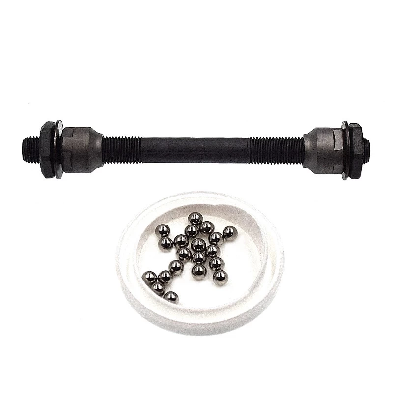 L’axe est fourni avec 2 rondelles et 2 écrous ainsi billes acier de 4,76 mm permettant une parfaite rotation.
