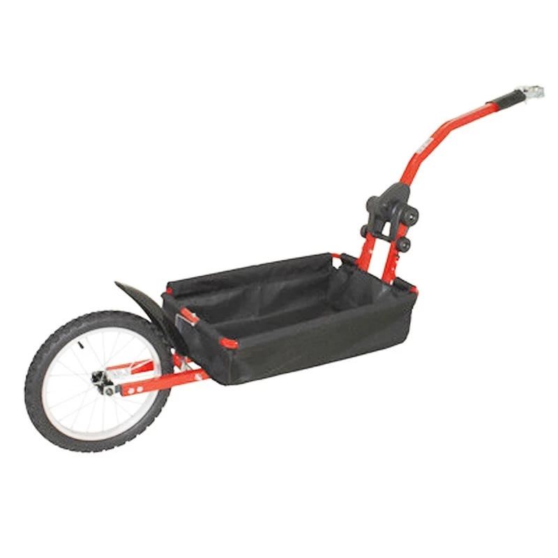 Cette remorque ne dispose que d’une roue de 20 pouces offrant une trajectoire parfaite du vélo tracteur sans gêner les mouvements et les actions de corps du cycliste permettant à l’ensemble remorque et vélo de se faufiler dans les endroits les plus étroits. Côté accessoires, on retrouve un garde-boue qui évite des éclaboussures sur les affaires transportés, ainsi qu’une attache rapide permettant le décrochement de la remorque et du bras repliable afin de facilité un rangement rapide.