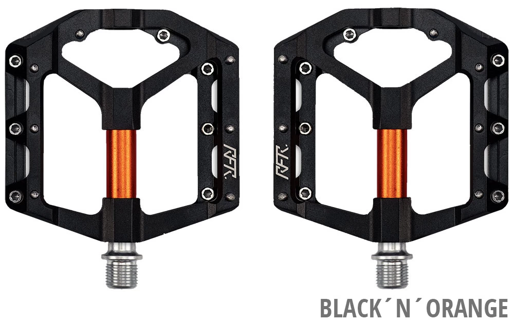 Les pédales de plateforme RFR SLT 2.0 usinées CNC de haute qualité en aluminium avec un design plat agressif et un poids léger de seulement 298 g / paire. Les pins interchangeables et la grande surface d’appui adhérente assurent la meilleure adhérence et la meilleure sécurité, et l’axe Cr-Mo avec roulement industriel à triple étanchéité avec douille LSL garantit une longue durée de vie.