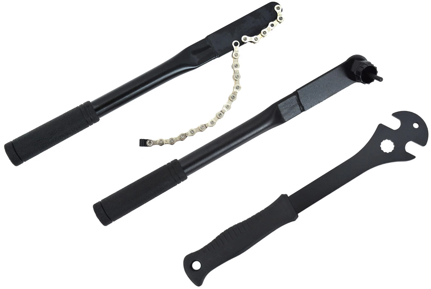 Le set de trois pièces composé d’un fouet à chaîne, d’un décrocheur de couronne et d’une clé à pédale est le pack sans souci de Radon et doit faire partie de l’équipement de base de tout atelier de réparation de vélos. Les versions extra longues permettent une transmission de force élevée sans risque de dérapage.